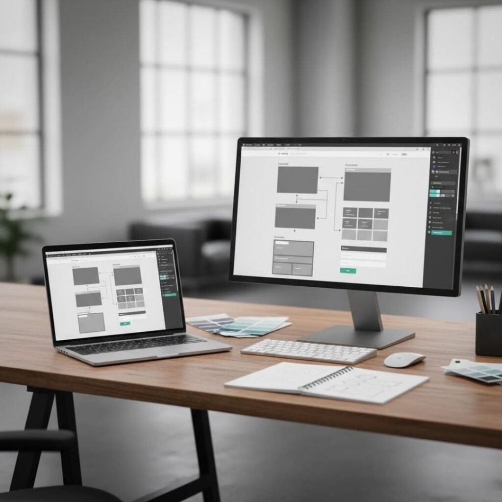 We design key pages and set a consistent layout system for sections, headings, and CTAs.
